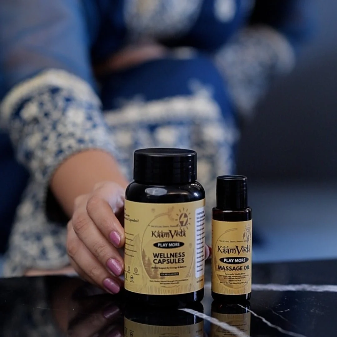 KaamVeda Men’s Vitality Combo Pack combines the benefits of herbal massage therapy and Ayurvedic dietary supplements in one powerful package. Perfect for men who want to stay active, energized, and confident every day.